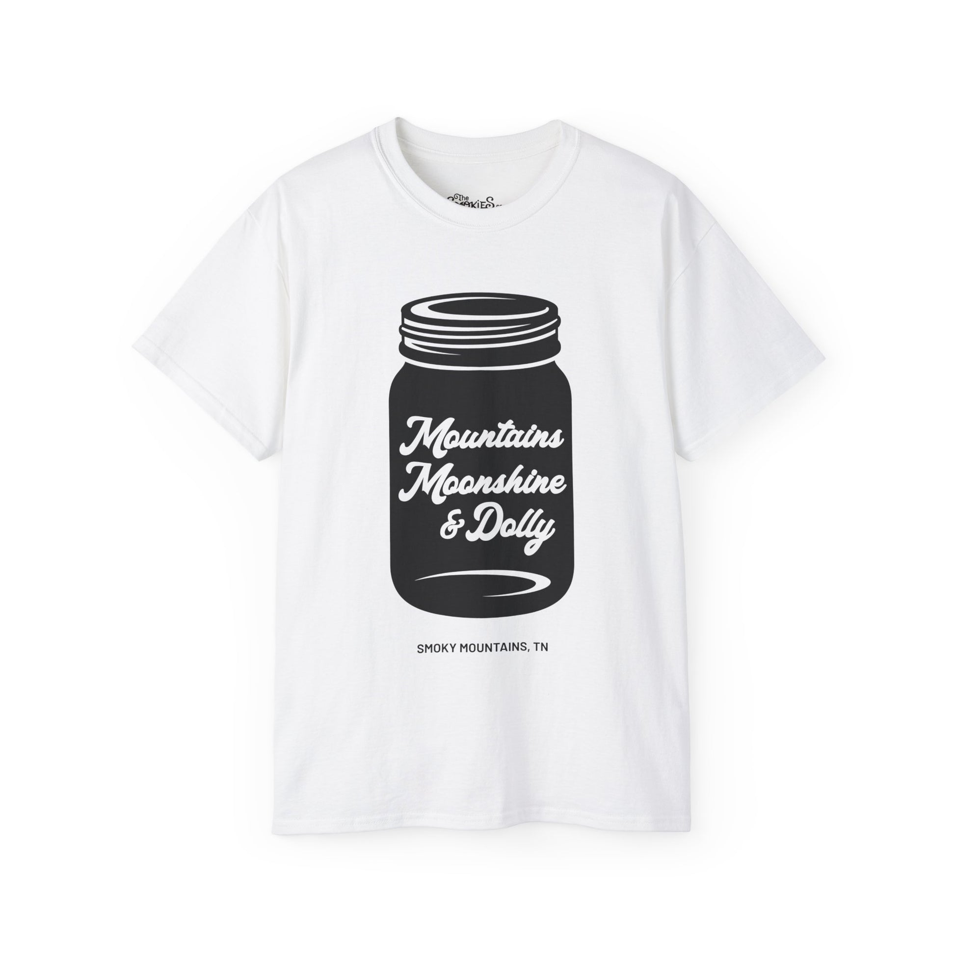 Commemorate your trip to the Smokies with this "Mountains, Moonshine & Dolly" tee.